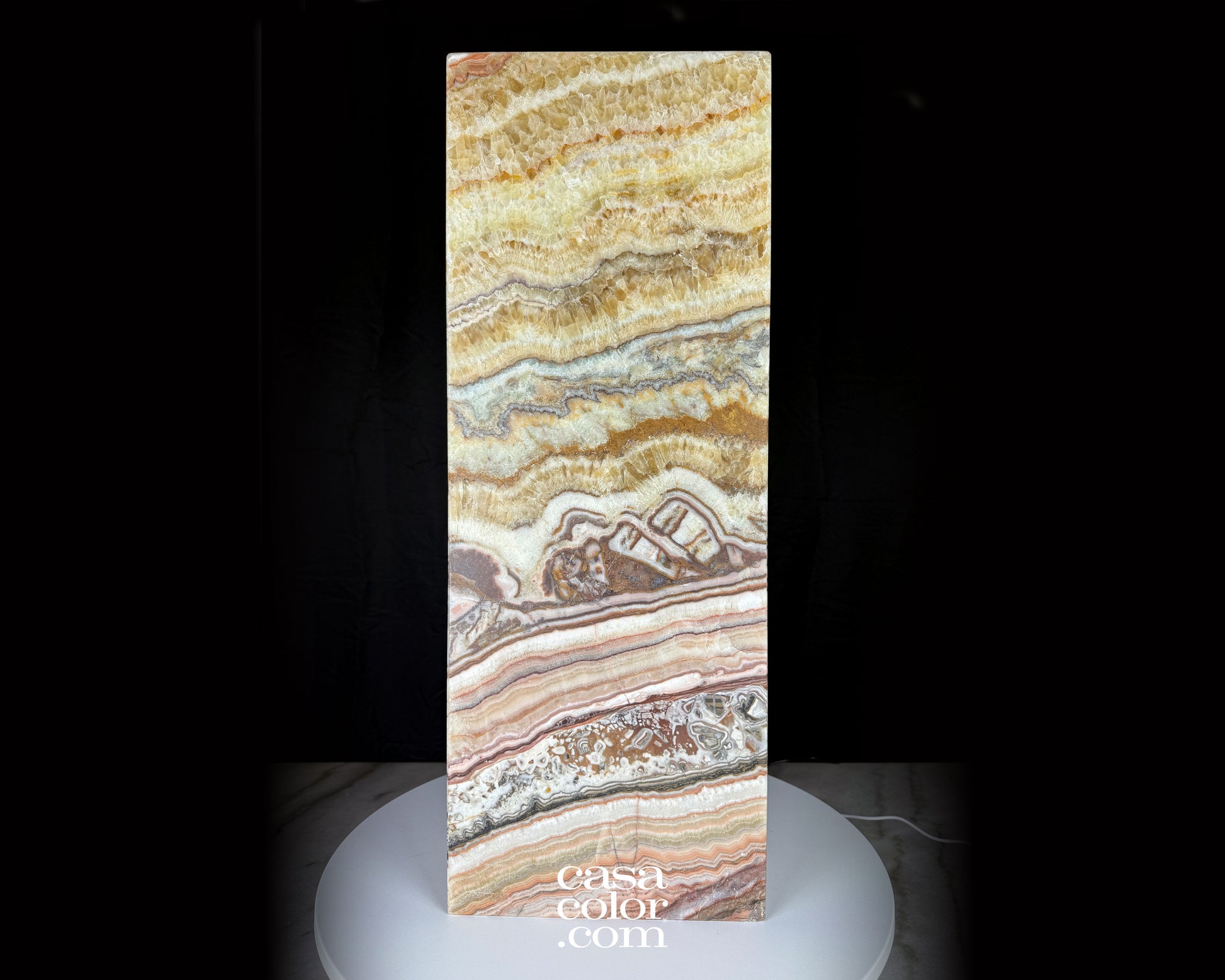 Each piece of Onyx is a unique masterpiece, showcasing the natural and singular artistry of handcrafted stone. The individuality of each piece adds to its exclusivity and allure. With a variety of textures, colors, and surface imperfections, the Onyx Gemstone is a stunning and distinctive addition to any space.