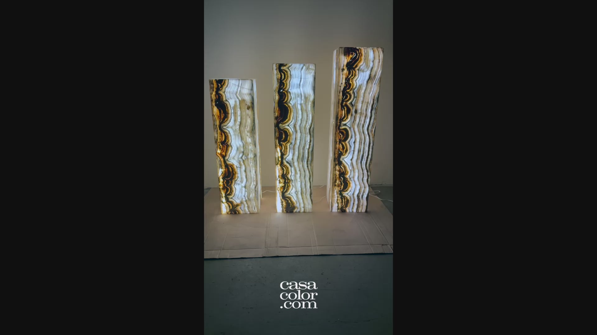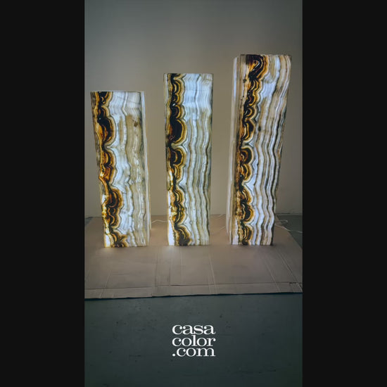 Magnificent Unique Set of Three Fiery Onyx Light Towers