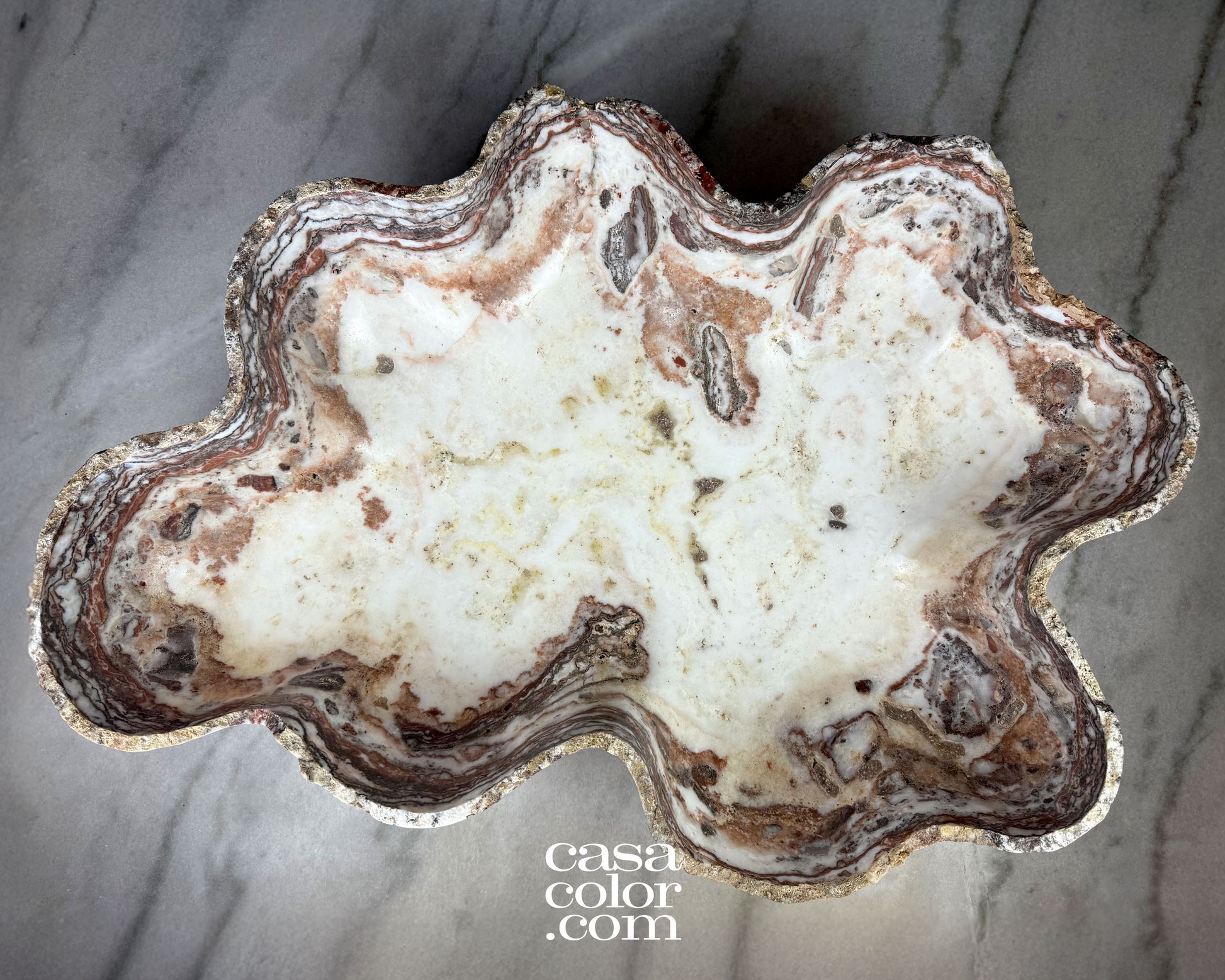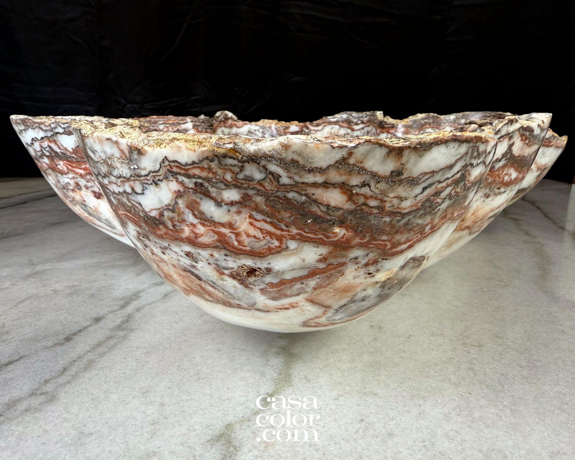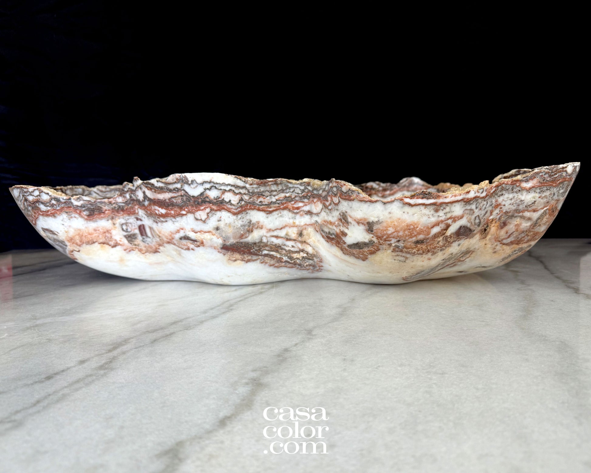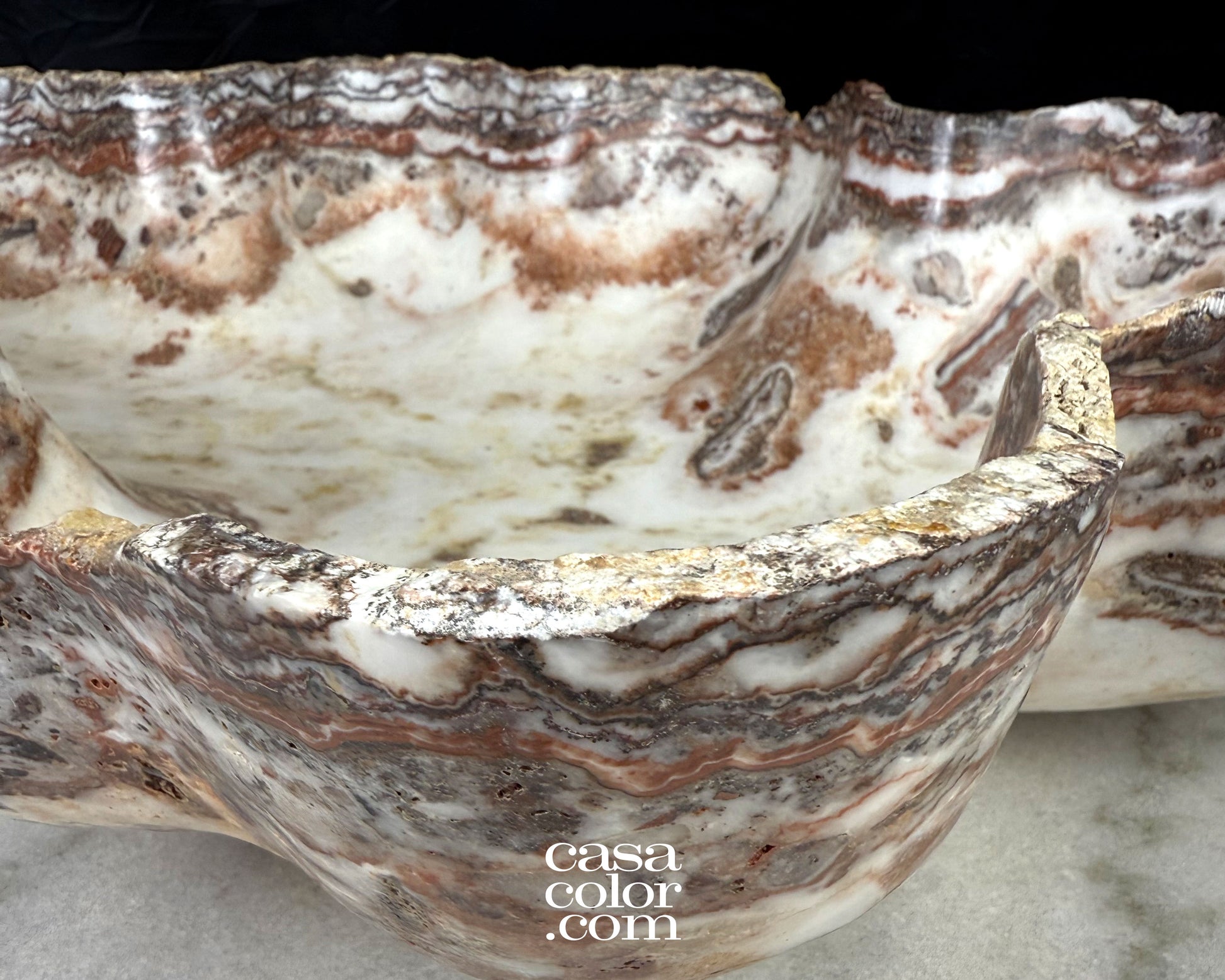 Huge White Onyx Bowl with Caramel Veins. Matte Surface