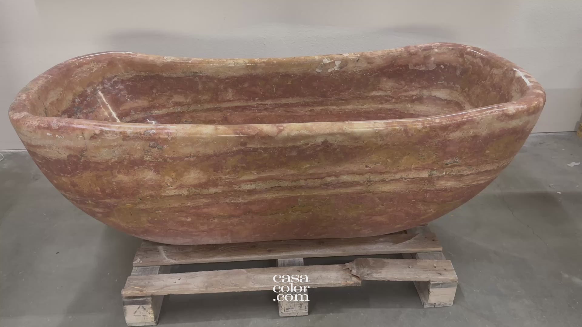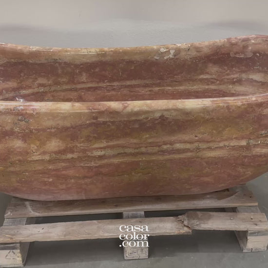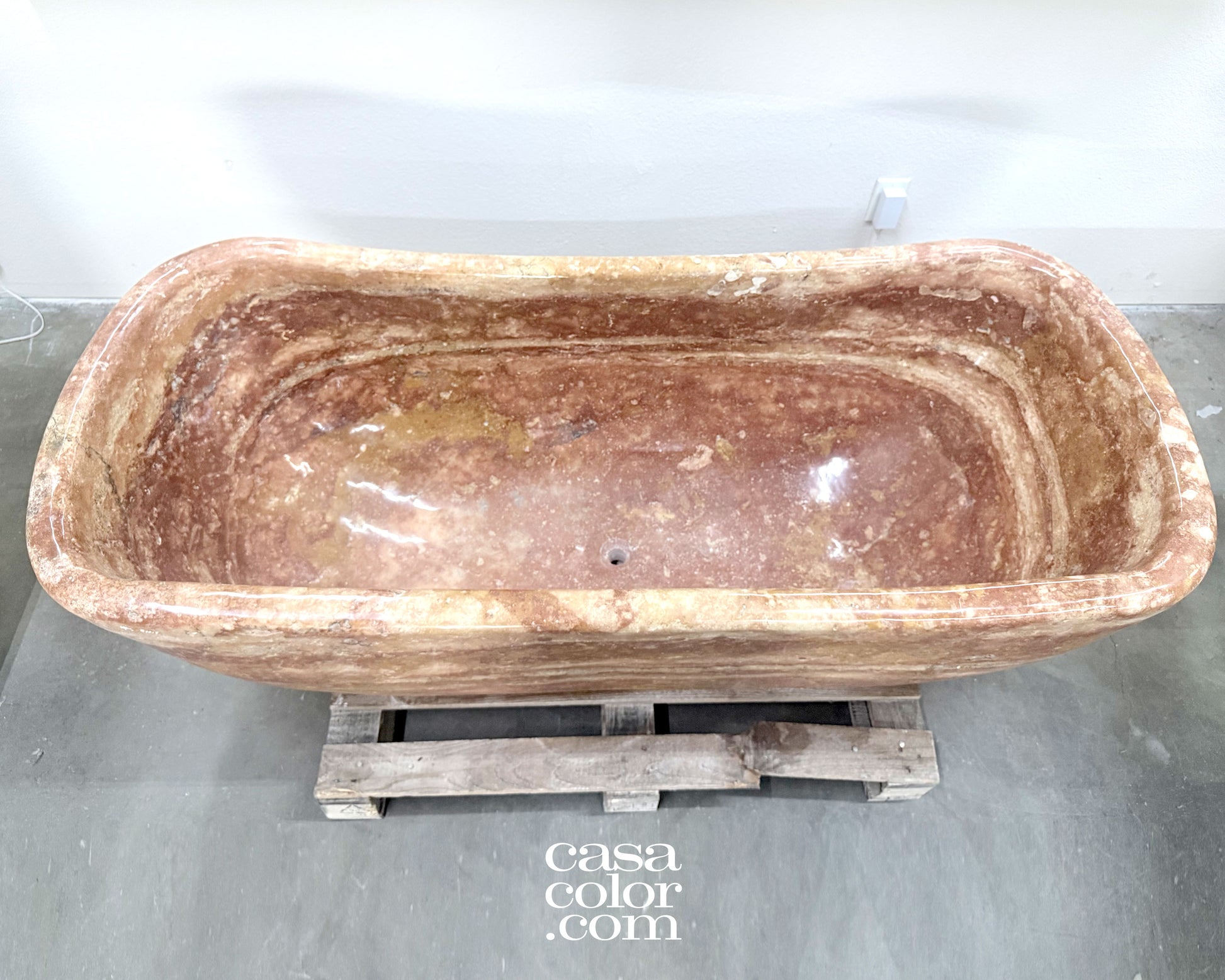 Reddish/Brown One Piece Hand-Carved 100% Natural Stone Tub. Indoor/Outdoor Tub